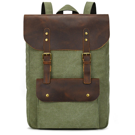 Men’s Oil Wax Canvas Bag Large Capacity Travel Shoulder Backpack