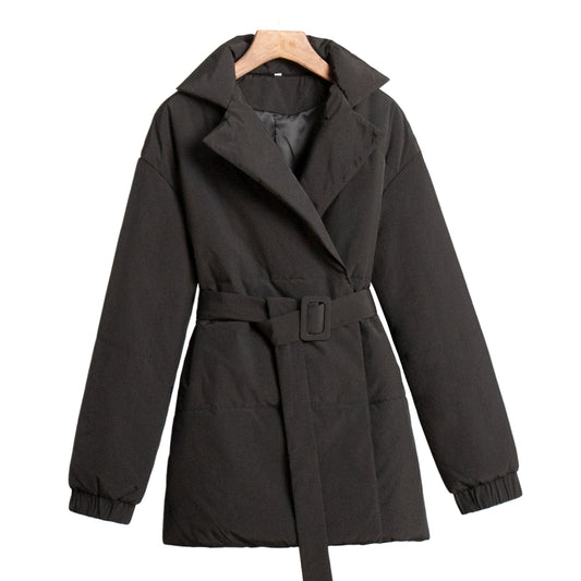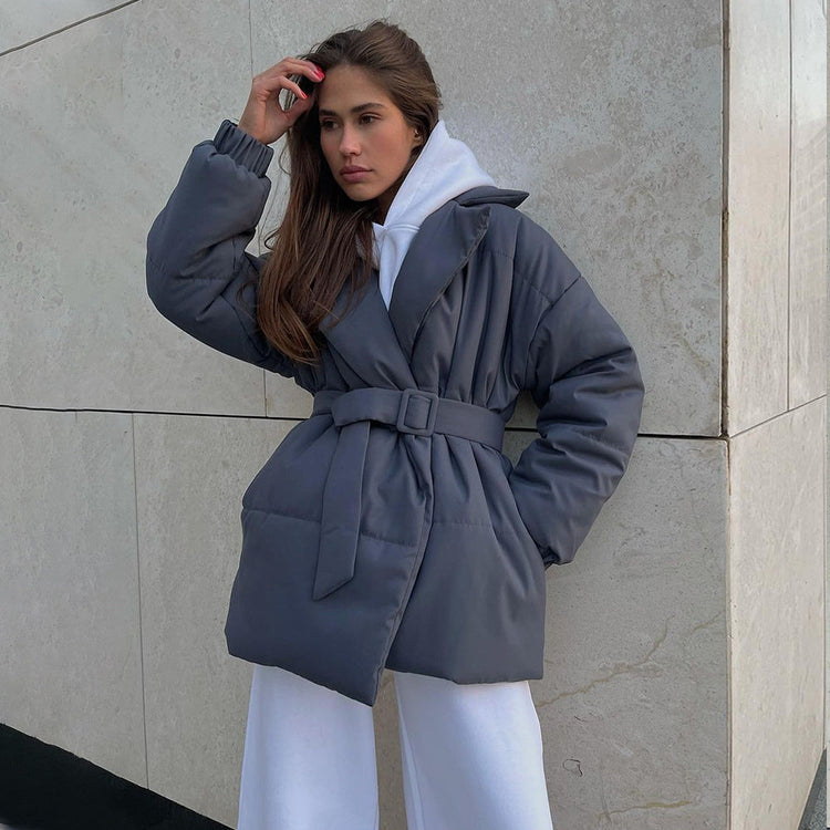 Women's Thick Cotton Jacket with Drawstring Slim Fit Design
