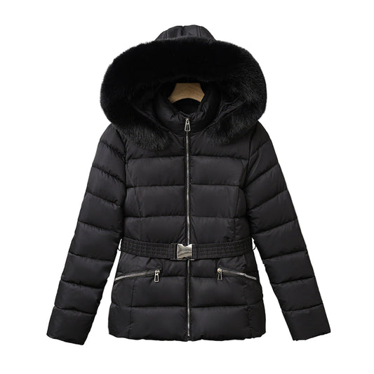Women's Hooded Fur Cotton Jacket for Warm Outdoor Winter Comfort