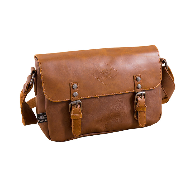 Men’s Retro PU Leather Flip Shoulder Bag Stylish Literary Satchel